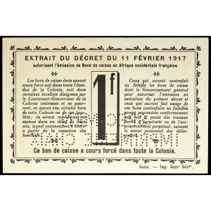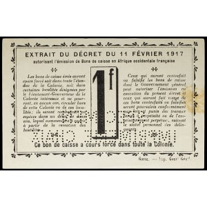 AFRIQUE ÉQUATORIALE FRANÇAISE - FRENCH EQUATORIAL AFRICA 1 franc ND (1917).