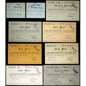 ALLEMAGNE - GERMANY Lot (8) - Bon de 10 et 50 pfennig ; 1, 2, 3, 5, 10 et 20 mark type “Gutschein” - Thann (Al…