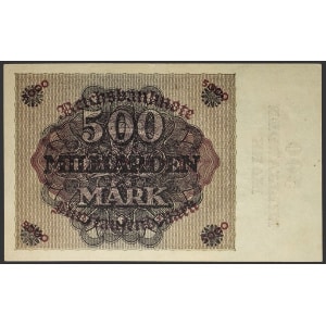 ALLEMAGNE - GERMANY 500 milliarden mark surchargé sur 500 mark 15 mars 1923.