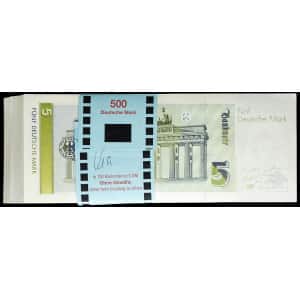 ALLEMAGNE - GERMANY Lot (100) - liasse de 5 deutsche mark avec bandeau et numéros consécutifs 1er août 1991.…