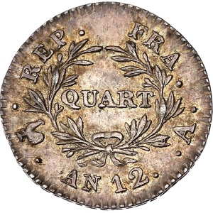 FRANCE Consulat (1799-1804). Quart de franc Bonaparte An 12 (1803), A, Paris.