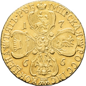 RUSSIE - RUSSIA Catherine II (1762-1796). 5 roubles 1766, СПБ, Saint-Pétersbourg.…