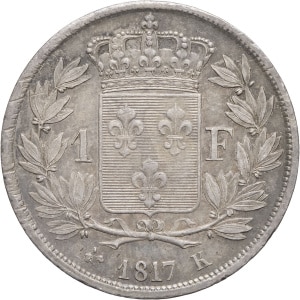 FRANCE - FRANCE Louis XVIII (1814-1824). 1 franc 1817, K, Bordeaux.