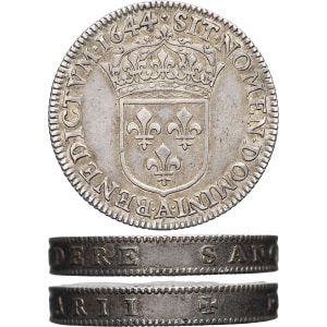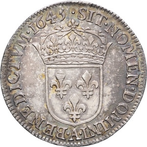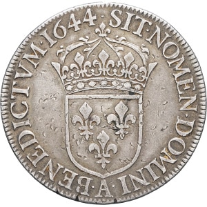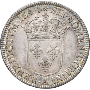 FRANCE / CAPÉTIENS - FRANCE / ROYAL Louis XIV (1643-1715). Écu à la mèche courte 1644, A, Paris (point).…