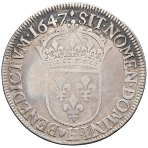 FRANCE / CAPÉTIENS - FRANCE / ROYAL Louis XIV (1643-1715). Écu à la mèche longue 1647, H, La Rochelle.…
