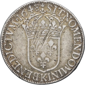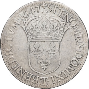 FRANCE / CAPÉTIENS - FRANCE / ROYAL Louis XIV (1643-1715). Écu à la mèche longue 1647, T, Nantes.…