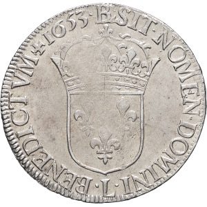 FRANCE / CAPÉTIENS - FRANCE / ROYAL Louis XIV (1643-1715). Écu à la mèche longue 1653, 9, Rennes.…