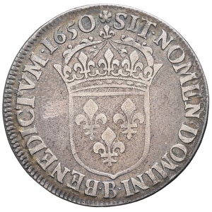FRANCE / CAPÉTIENS - FRANCE / ROYAL Louis XIV (1643-1715). Écu à la mèche longue 1650, K, Bordeaux.…