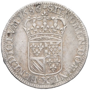 FRANCE / CAPÉTIENS - FRANCE / ROYAL Louis XIV (1643-1715). Écu à la cravate, 2e émission par F. Warin 1679, A,…