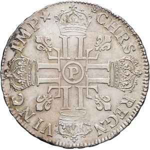 FRANCE / CAPÉTIENS - FRANCE / ROYAL Louis XIV (1643-1715). Écu aux palmes ND [millésime illisible], Atelier in…