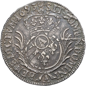 FRANCE / CAPÉTIENS - FRANCE / ROYAL Louis XIV (1643-1715). Demi-écu aux palmes 1693, A, Paris.…