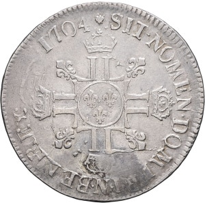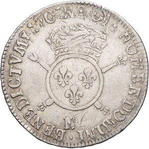 FRANCE / CAPÉTIENS - FRANCE / ROYAL Louis XIV (1643-1715). Écu aux insignes 1702, B, Rouen.…