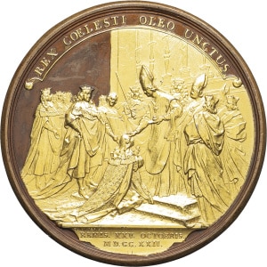 FRANCE / CAPÉTIENS - FRANCE / ROYAL Louis XV (1715-1774). Médaille, sacre de Louis XV à Reims, en bronze aux r…