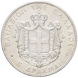GRÈCE - GREECE Georges Ier (1863-1913). 5 drachmes 1875, A, Paris.