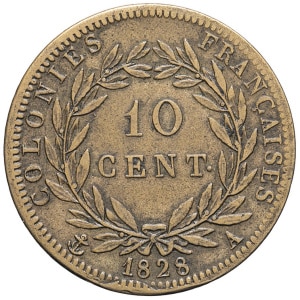 GUYANE FRANÇAISE - FRENCH GUIANA Charles X (1824-1830). 10 centimes des colonies françaises 1828, A, Paris.…