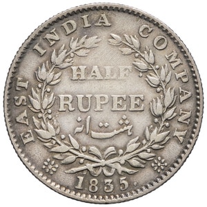 INDES BRITANNIQUES - BRITISH INDIES Guillaume IV (1830-1837). 1/2 roupie 1835, Bombay.…
