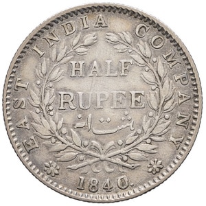 INDES BRITANNIQUES - BRITISH INDIES Victoria (1837-1901). 1/2 roupie, légende continue 1840, Bombay.…