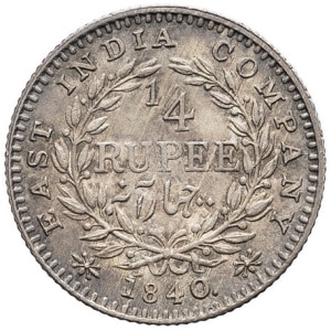 INDES BRITANNIQUES - BRITISH INDIES Victoria (1837-1901). 1/4 roupie, légende continue 1840, Calcutta.…
