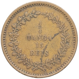 INDES PORTUGAISES - PORTUGUESE INDIES Louis Ier (1861-1889). 1/4 tanga ou 15 réis 1871, Bombay.…