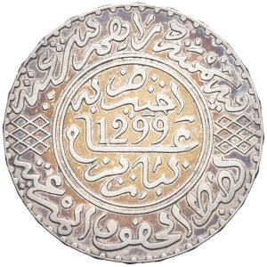 MAROC - MOROCCO Hassan Ier (1873-1894). 5 dirhams (1/2 rial) AH 1299 (1882), Paris.…