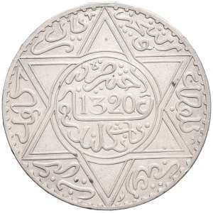 MAROC - MOROCCO Abdül Aziz I (1894-1908). 10 dirhams (rial) AH 1320 (1902), Londres.…