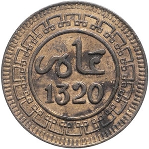 MAROC - MOROCCO Abdül Aziz I (1894-1908). 1 mouzouna AH 1320 (1902), Birmingham.…