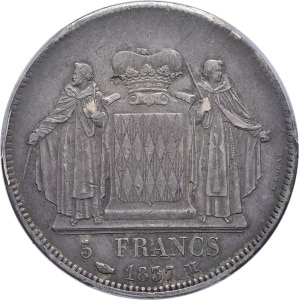MONACO - MONACO Honoré V (1819-1841). 5 francs 1837, M, Monaco.