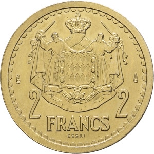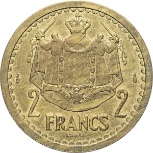 MONACO - MONACO Louis II (1922-1949). Essai de 2 francs cupro-aluminium ND (1943), Paris.…