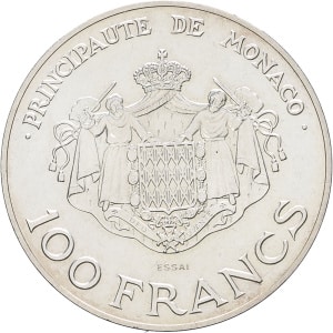 MONACO - MONACO Rainier III (1949-2005). Essai de 100 francs en argent 1982, Paris.…
