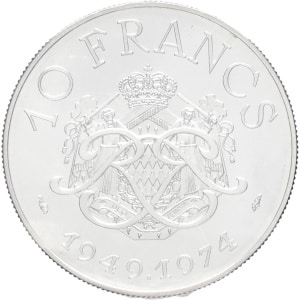 MONACO - MONACO Rainier III (1949-2005). Essai de 10 francs en argent, 25e anniversaire de règne 1974, Paris.…
