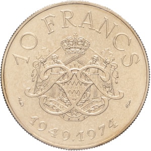 MONACO - MONACO Rainier III (1949-2005). Essai de 10 francs, 25e anniversaire de règne 1974, Paris.…