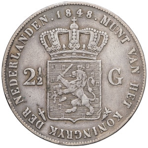 PAYS-BAS - NETHERLANDS Guillaume II (1840-1849). 2 1/2 florins (2 1/2 guldens) 1848, Utrecht.…