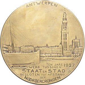 PAYS-BAS - NETHERLANDS Wilhelmine (1890-1948). Médaille, élargissement de l’Escaut à Noordergronden, par Jozue…