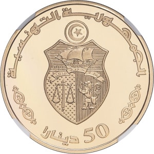TUNISIE - TUNISIA Zine el-Abidine Ben Ali (1987-2011). 50 dinars, 14e anniversaire du 7 novembre 1987 et Jeux …