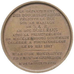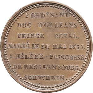FRANCE - FRANCE Louis-Philippe Ier (1830-1848). Médaille, mariage de Ferdinand-Philippe duc d’Orléans et Hélèn…