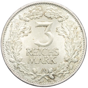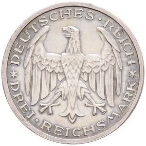 ALLEMAGNE - GERMANY République de Weimar (Empire allemand) (1918-1933). 3 (drei) reichsmark, 400e anniversaire…