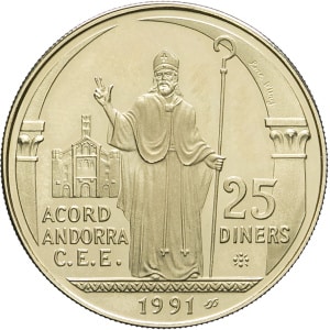 ANDORRE - ANDORRA Joan Martí i Alanis, coprince (1970-2003). 25 diners ou ECU, accord douanier avec la CEE de …