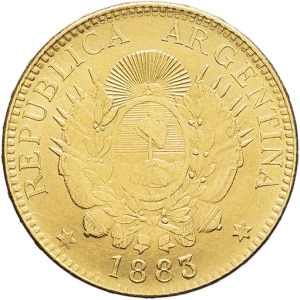 ARGENTINE - ARGENTINA République. 5 pesos ou 1 argentino 1888, Buenos Aires.