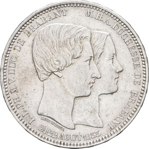BELGIQUE - BELGIUM Léopold Ier (1831-1865). Module de 5 francs, mariage du duc et de la duchesse de Brabant 18…