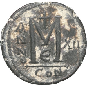 EMPIRE BYZANTIN - BYZANTINE Justinien (527-565). Follis An XII (538-539), Constantinople, 5e officine.…
