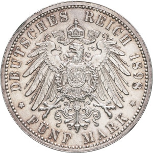 ALLEMAGNE - GERMANY Bade, Frédéric I (1856-1907). 5 (fünf) mark 1898, G, Karlsruhe.…