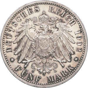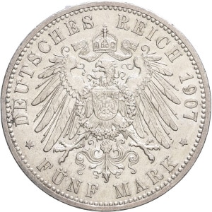 ALLEMAGNE - GERMANY Saxe-Coburg-Gotha, Charles-Édouard (1900-1918). 5 (fünf) mark 1907, A, Berlin.…