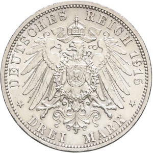 ALLEMAGNE - GERMANY Brunswick-Wolfenbüttel, Ernest-Auguste (1913-1918). 3 (drei) mark, mariage et accession au…