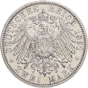 ALLEMAGNE - GERMANY Hesse-Darmstadt, Louis IV (1877-1892). 2 (zwei) mark 1891, A, Berlin.…