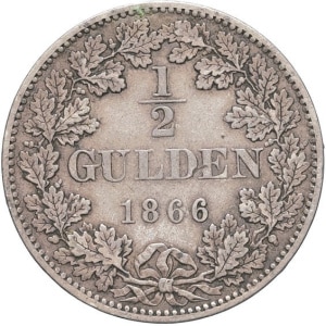 ALLEMAGNE - GERMANY Wurtemberg, Charles (1864-1891). 1/2 gulden 1866, Stuttgart.