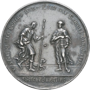 ALLEMAGNE - GERMANY Médaille religieuse, les vertus masculines, par Georg Hautsch ND (XVIIIe s.), Nuremberg.…