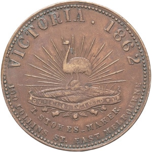 AUSTRALIE - AUSTRALIA Victoria (1837-1901). Jeton au module d’un penny, T. Stokes à Melbourne 1862, Melbourne.…