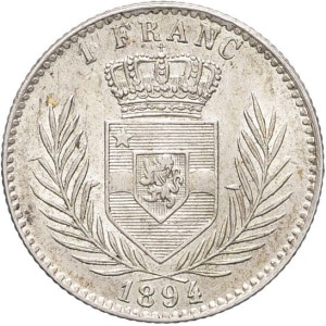 BELGIQUE - BELGIUM Congo, Léopold II (1885-1908). 1 franc 1894, Bruxelles.