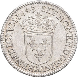 FRANCE / CAPÉTIENS - FRANCE / ROYAL Louis XIV (1643-1715). Douzième d’écu à la mèche courte 1643, A, Paris (po…