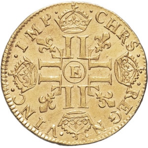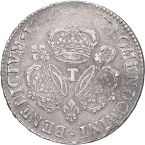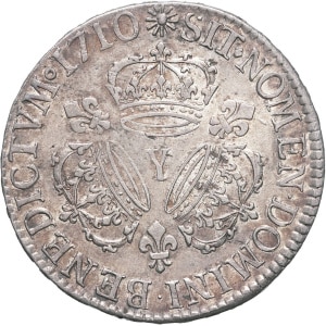FRANCE / CAPÉTIENS - FRANCE / ROYAL Louis XIV (1643-1715). Écu aux trois couronnes 1710, Y, Bourges.…